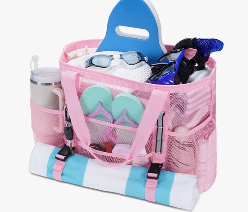 Nylon mesh, polyester mesh, and PVC mesh are the three most popular options for beach bags, each offering its own unique set of benefits. Nylon mesh is known for its strength and resistance to abrasion, making it a good choice for durability. Polyester mesh offers excellent UV resistance, which helps it maintain color and strength over time. PVC mesh, on the other hand, is more waterproof, making it ideal for keeping wet items separated from dry ones.